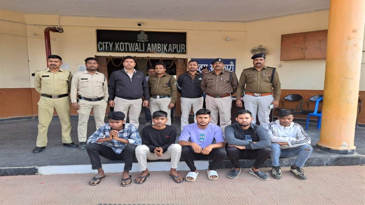 इनसे पूछताछ की गई। पूछताछ में इस घटना में शामिल सभी लोगों का नाम सामने आ गया। इसके बाद पुलिस ने एक-एक कर रात में ही सभी की गिरफ्तारी का अभियान चलाया। कुल 10 लोगों को मामले में पकड़ा गया है। आरोपितों ने सोडा दुकान संचालित करने वाले शैलू सिंह अमलभिट्टी की दुकान में तोड़फोड़ व मारपीट की थी। मामले में पुलिस ने संदीप शर्मा (19) गोधनपुर , रामेश्वर नागेश (18) घंघरी , विक्की कुमार सिंह (19) केरता चौकी खड़गवा, भानुप्रताप सिंह (21) नवापारा गीधनपुर रोड , रविचन्द राजवाडे (20) गोरसीडबरा गांधीनगर के साथ पांच अपचारी बालकों को गिरफ्तार कर तीन मोटरसाइकिल व हथियार बरामद किया है। इनके विरुद्ध धारा 147, 148, 149,294, 506, 323, 427 आईपीसी व 25, 27 आर्म्स एक्ट का अपराध पंजीकृत किया गया है।