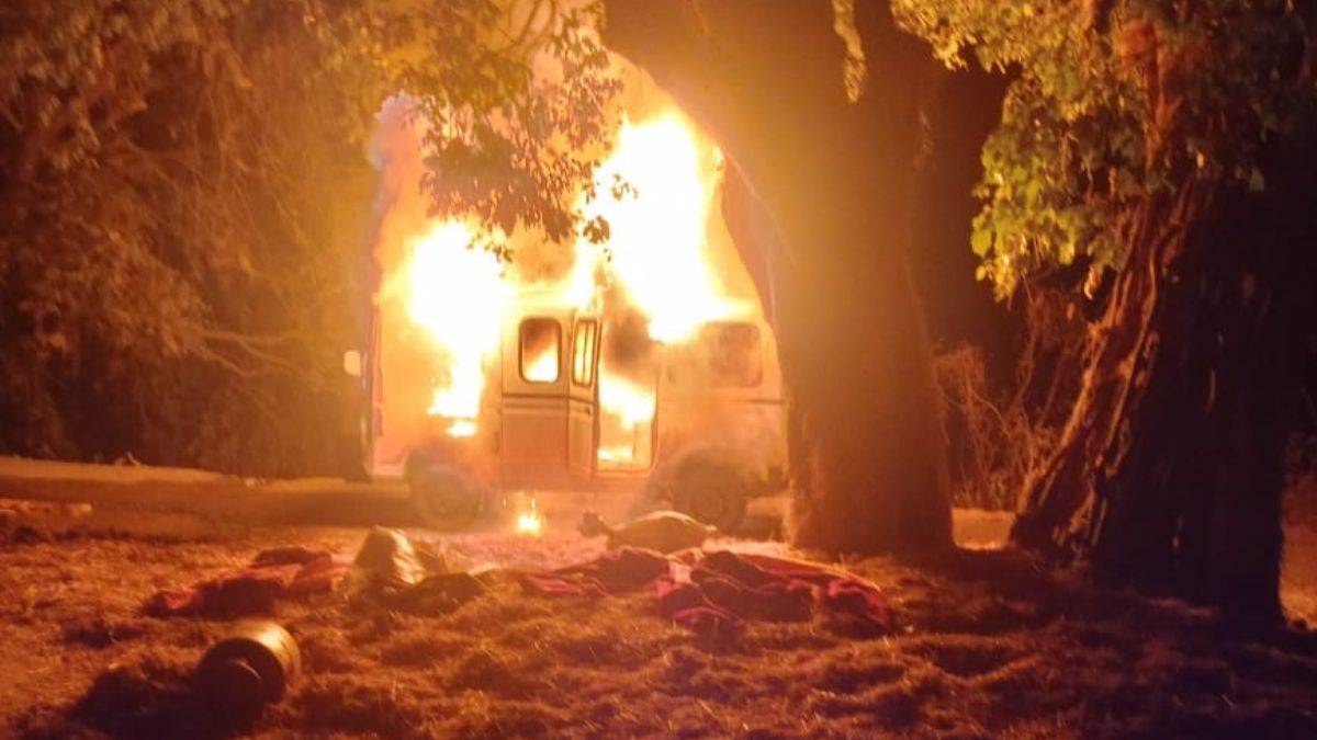 दरिमा थाना क्षेत्र में देर रात टाटा मैजिक वाहन में अचानक आग लग गईHighLights