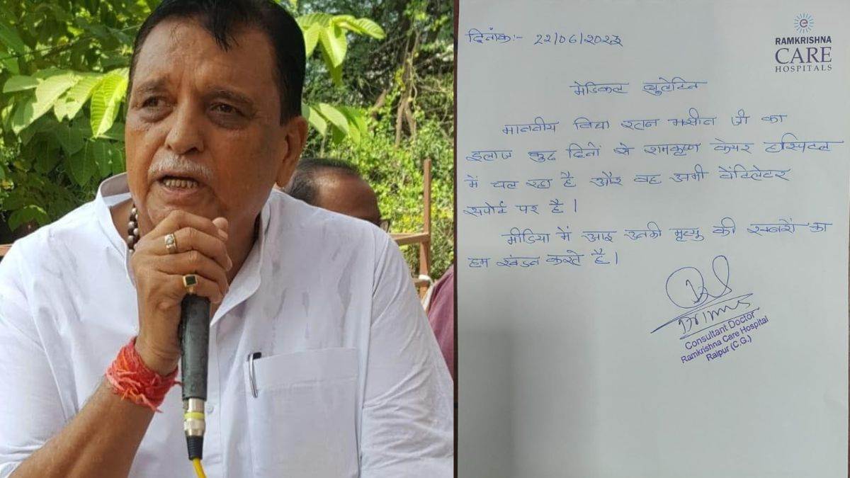 सीएम भूपेश बघेल ने ट्वीट कर विधायक विद्यारतन भसीन के उनके लंबी उम्र की कामना की है। साथ ही बताया कि बताया कि वरिष्ठ चिकित्सकों की देखरेख में विधायक का इलाज जारी है।