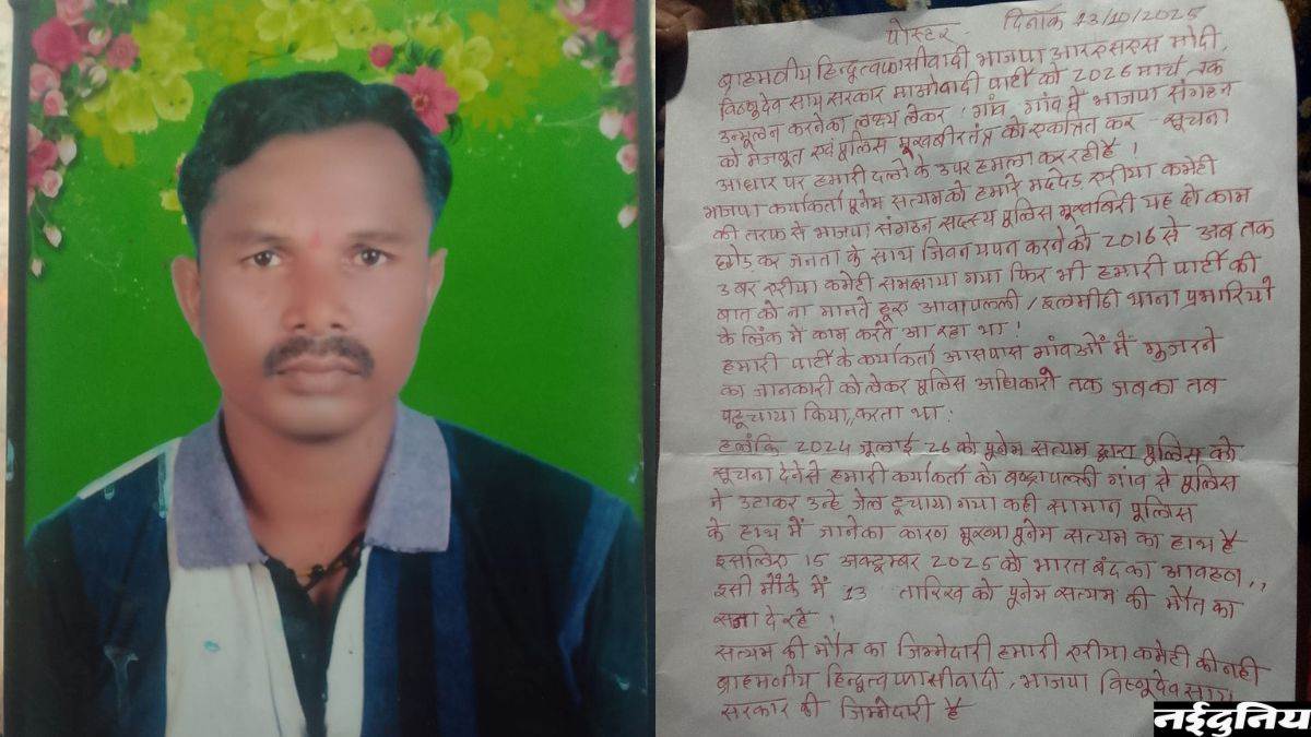 पर्चे में माआवादियों ने लिखा, 'सत्यम की मौत का जिम्मेदारी हमारी एरिया कमेटी की नहीं ब्राह्मणीय हिन्दुत्व-फासीवादी, भाजपा विष्णुदेव साय सरकार की जिम्मेदारी है"