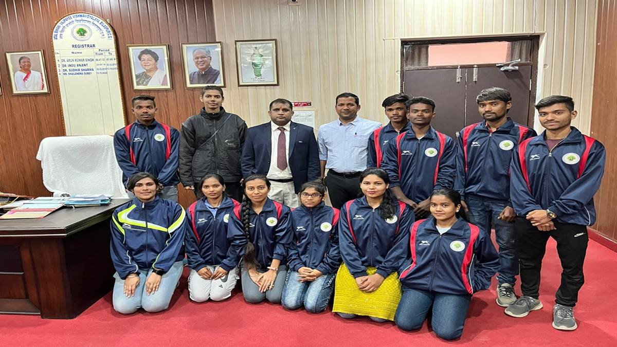 योग प्रतियोगिता में भाग लेने केे लिए महिला टीम से आयुषी, मुस्कान भुवनेश्वरी, रितु, प्रिया, आरती गईं है। वहीं पुरुष टीम का राधेश्याम, लोमश, प्रवीण, छतलाल, नितीश प्रतिनिधित्व कर रहे हैं। टीम कोच स्वाति सोनी (क्रीड़ा अधिकारी) और टीम मैनेजर श्रीमती शुक्ला है। टीम ने भुवनेश्वर रवाना होने से पहले कुलपति प्रो एडीन वाजपेयी से मुलाकात की। इस दौरान उन्होंने सभी खिलाड़ियों से बेहतर प्रदर्शन करने का आग्रह किया है। टीम कुलसचिव शैलेंद्र दुबे व संचालक सौमित्र तिवारी ने शुभकामानाएं दी और कहा कि यह बड़ी प्रतियोगिता है और इसमें बेहतर प्रदर्शन से विश्वविद्यालय का नाम रौशन होगा। विश्वविद्यालय प्रबंधन की यही उम्मीद है। सभी प्रतिभागी इस उद्देश्य के साथ अपना प्रदर्शन करें। सफलता अवश्य जरुर मिलेगी। उन्होंने यह भी कहा कि योग हो या भी अन्य खेल हमेशा खिलाड़ियों को खेल भावना का परिचय देना चाहिए।