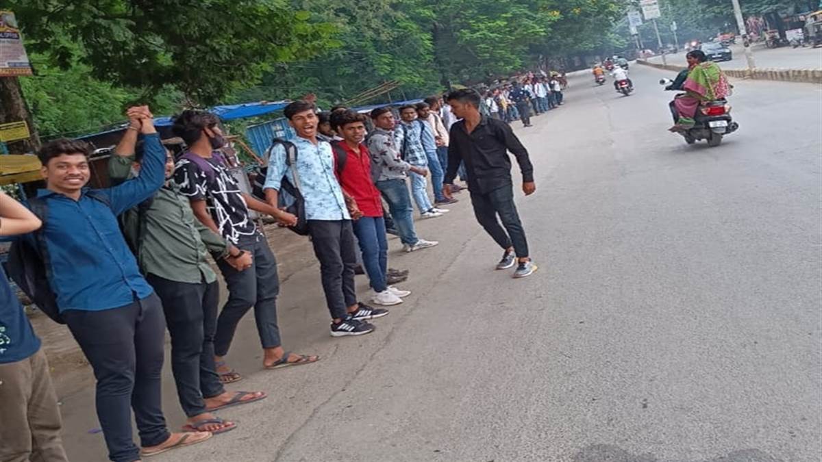 साइंस कालेज के छात्रों का चरणबद्ध आंदोलन एक सितंबर से लगातार जारी है। बुधवार दोपहर एक बजे के लगभग छात्रों ने रणनीति के तहत कालेज से बाहर आ गए। मेन रोड पर मानव श्रृंखला बनाकर अपनी नाराजगी जाहिर की। छात्रों के इस विरोध प्रदर्शन का अखिल भारतीय विद्यार्थी परिषद ने भी समर्थन किया। आंदोलन वापस लेने कॉलेज प्रशासन लगातार प्रयास में है लेकिन अभी तक सफलता नहीं मिली है। दूसरी और छात्रों का विरोध लगातार बढ़ रहा है। मानव श्रृंखला के साथ छात्रों ने यह संदेश देने का प्रयास किया कि किसी तरह मुख्यमंत्री उनकी बातों को सुने और छात्र हित में न्याय करें।