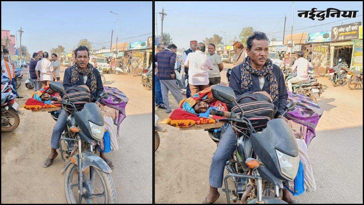 कपूरा बाई के दोनों पैर काम नहीं करते हैं और उनकी स्थिति ऐसी है कि वह बैठ भी नहीं सकतीं। समलू के सामने सबसे बड़ी चुनौती पत्नी को रायपुर स्थित एम्स (AIIMS) अस्पताल तक पहुंचाने की थी। कबीरधाम से रायपुर की दूरी लगभग 140 किलोमीटर है। आर्थिक रूप से कमजोर समलू के पास न तो एम्बुलेंस बुलाने के पैसे थे और न ही वह कोई चार पहिया वाहन किराए पर ले सकता था। यात्री बस में पत्नी की हालत और भीड़ को देखते हुए उसने एक जोखिम भरा लेकिन साहसी निर्णय लिया। उसने अपनी बाइक की पिछली सीट पर लकड़ी की एक लंबी पटरी (पटरा) बांधी और उसे एक छोटी खाट का रूप दे दिया, ताकि पत्नी उस पर लेटकर सफर कर सके।