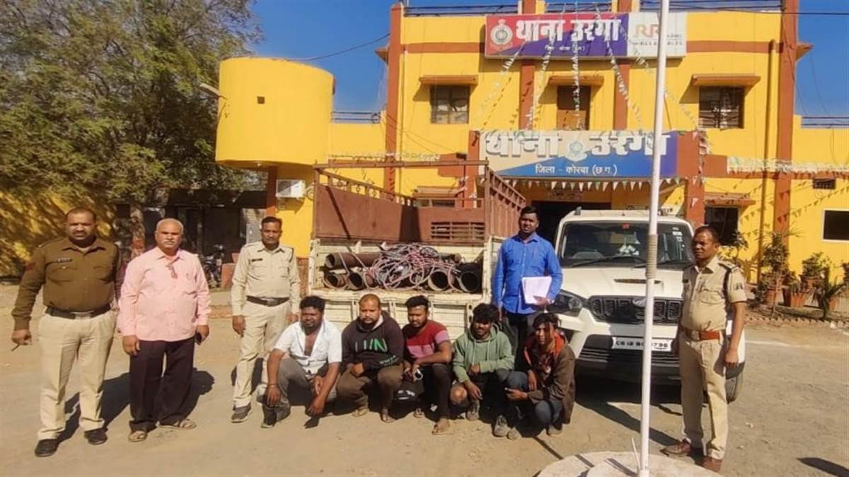 ग्राम पताढ़ी में संचालित लैंको अमरकंटक पावर प्लांट की विस्तार परियोजना का काम बंद पडा हुआ है। इस पर चोरों की नजर लग गई है। मंगलवार को उरगा पुलिस को लैंको के सुरक्षा कर्मी विजय कुमार वैरागी ने सूचना दी कि कुछ लोग प्लांट के अंदर से लोहे का खंभा काट कर ले जा रहे है। इस पर निरीक्षक सनत सोनवानी ने टीम गठित कर रवाना किया। तब पुलिस को रिवर इंटक कुदुरमाल के पास कुछ युवक गैस कटर में लैको प्लांट का लोहे का खंभा को काटकर पिकअप क्रमांक सीजी 12 बीजी 0831, स्कार्पियो वाहन सीजी 12 बीजी 9736 में चोरी कर ले जाते हुए दिखे। पुलिस व लैंको सुरक्षा कर्मी ने कुदुरमाल में उक्त दोनों वाहन को पकड़ा। वाहन में पांच युवक बैठे हुए थे। पूछताछ में उन्होंने अपना नाम राजेश पटेल उर्फ सनोज पटेल 24 साल निवासी भिलाई खुर्द, ओम प्रकाश पटेल 21 साल निवासी दादर खुर्द, राजेश कुमार पटेल 26 साल निवासी भिलाई खुर्द, विकास पटेल 23 साल साकिन दादरखुर्द व संदीप यादव 20 साल साकिन दादरखुर्द बताया। पुलिस ने उनके पास से स्कार्पियो व बोलेरो पिकअप वाहन में गैस कटर, गैस सिलेंडर व पांच कटा हुआ लोहे का खंभा जब्त किया। आरोपितों ने बताया कि लैंको प्लांट के लोहे के खंभे को गैस कटर के माध्यम से काटकर चोरी किए है।