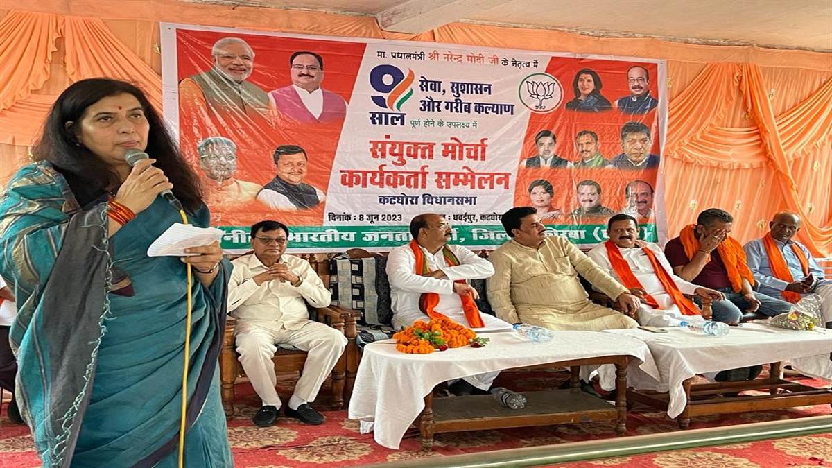 प्रधानमंत्री नरेंद्र मोदी की अगुवाई में केंद्र सरकार के नौ वर्ष पूर्ण होने के अवसर पर भाजपा द्वारा विशेष जनसंपर्क अभियान चलाया जा रहा है। इसी कड़ी में कटघोरा विधानसभा में ग्राम पंचायत धवईपुर में विधानसभा स्तरीय संयुक्त मोर्चा के पदाधिकारियों एवं कार्यकर्ताओं का सम्मेलन आयोजित किया गया। कार्यक्रम में रामपुर विधायक ननकी राम कंवर, जिलाध्यक्ष डा राजीव सिंह, राज्य खाद्य आयोग के पूर्व अध्यक्ष ज्योति नंद दुबे, पूर्व संसदीय सचिव लखनलाल देवांगन व पूर्व महापौर जोगेश लांबा, गोपाल साहू, दिनेश सिंह, जिला कोषाध्यक्ष गोपाल मोदी, पूर्व जिलाध्यक्ष पवन गर्ग, श्यामलाल मरावी व अनुसूचित जनजाति मोर्चा के जिलाध्यक्ष व जनपद सदस्य राम प्रसाद कोराम जिला महामंत्री संतोष देवांगन प्रमुख रूप से उपस्थित रहे। इस दौरान पांडेय ने मोदी सरकार की नौ साल की उपलब्धियां गिनाते हुए कहा कि मोदी सरकार के नौ साल गरीब कल्याण को समर्पित हैं। उन्होंने हर वर्ग के लिए योजनाएं बनाईं और उस तक पहुंचाई। केंद्र सरकार गरीब, शोषित, वंछित, दलित, पीड़ित, पिछड़ा वर्ग एवं आदिवासियों के उत्थान के प्रति समर्पित सरकार है। पांडेय ने कहा की आधुनिक भारत के विकास के स्वर्णिम पल का इतिहास रचा जा रहा है।