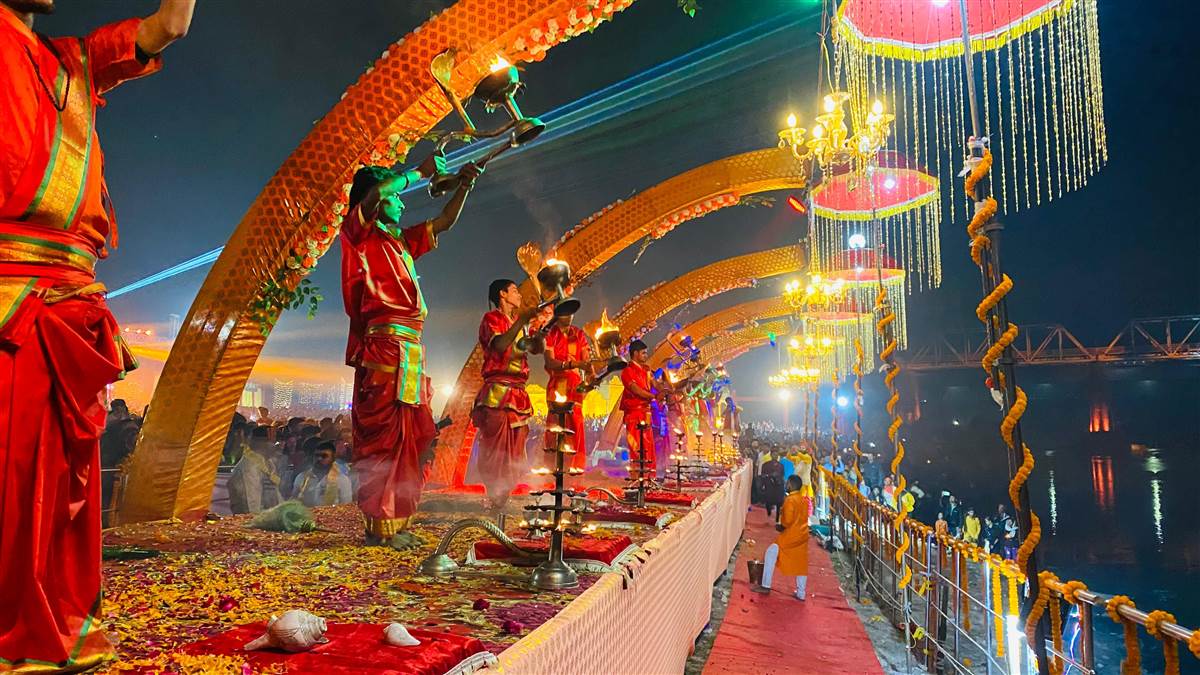 एक ओर दीप प्रज्ज्वलित किए जाने से सर्व मंगलाघाट जगमग हुई वहीं आतिशबाजी से आकाश चकाचौंध रहा। सतरंगी विद्युत रोशनी ने उत्सव में रंग भर दिया। नदी तट में दीप कतार को प्रज्वतिल करने के लिए लोगाें ने बढ़चढ़ कर भागीदारी निभाई। रंगोली और पुष्प सज्जा के बीच कलश स्थापित की गई थी।