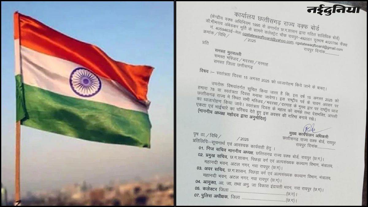 छत्तीसगढ़ वक्फ बोर्ड का बड़ा आदेश, सभी मस्जिद, मदरसा और दरगाह में 15 अगस्त को फहराया जाएगा तिरंगा