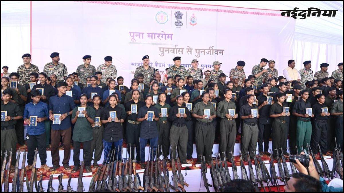 नईदुनिया प्रतिनिधि, रायपुर। छत्तीसगढ़ के नक्सल प्रभावित दण्डकारण्य क्षेत्र में शुक्रवार का दिन इतिहास के पन्नों में दर्ज हो गया। एक लंबे संघर्ष और दशकों की हिंसा के बाद कुल 210 माओवादी कैडरों ने समाज की मुख्यधारा में लौटने का निर्णय लिया। इनमें एक सेंट्रल कमेटी सदस्य, चार डीकेएसजेडसी सदस्य, 21 डिविजनल कमेटी सदस्य सहित कई कुख्यात और वांछित माओवादी नेता शामिल हैं। इसे देश का अब तक का सबसे बड़ा सामूहिक आत्मसमर्पण माना जा रहा है।
