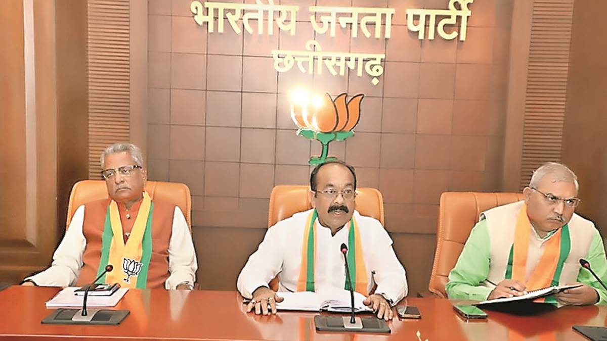 रायपुर(राज्य ब्यूरो)। CG Election 2023: छत्तीसगढ़ भाजपा के प्रदेश प्रभारी ओम माथुर ने भाजपा कार्यालय कुशाभाऊ ठाकरे परिसर में चुनावी रणनीति पर चर्चा की। माथुर ने चुनावी टिकट वितरण को लेकर चर्चा की। पार्टी सूत्रों की मानें तो भाजपा की परिवर्तन यात्रा के समापन के बाद भाजपा की अगली सूची जाएगी। अभी तक भाजपा ने 21 विधानसभा क्षेत्रों में अपने प्रत्याशियों का नाम घोषित कर दिया है। बैठक में प्रदेश भाजपा के सह प्रभारी नितिन नबीन, भाजपा के प्रदेश अध्यक्ष अरुण साव, नेता प्रतिपक्ष नारायण चंदेल व अन्य नेता मौजूद रहे।