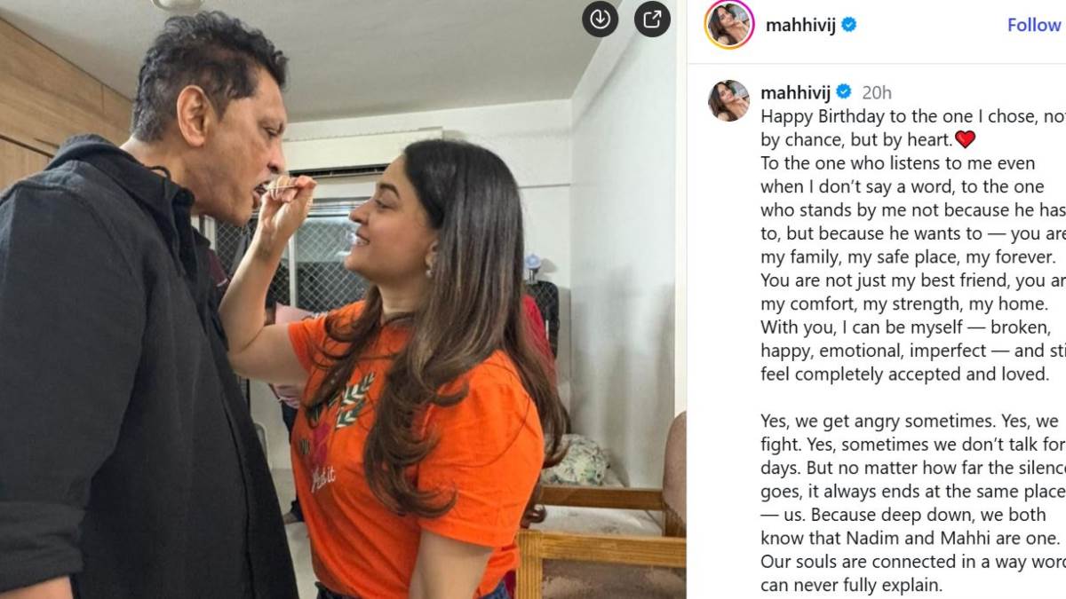 माही विज ने हाल ही में नदीम के जन्मदिन पर एक भावुक पोस्ट साझा की। इसमें उन्होंने लिखा कि नदीम उनकी जिंदगी में संयोग से नहीं, बल्कि दिल से चुना हुआ रिश्ता हैं। माही ने उन्हें अपना सुकून, ताकत और घर बताया। उन्होंने यह भी कहा कि भले ही दोनों के बीच मतभेद हों, लेकिन अंत में उनकी चुप्पी एक-दूसरे पर ही आकर खत्म होती है। माही के मुताबिक, दोनों की बॉन्डिंग इतनी गहरी है कि उसे शब्दों में समझाना मुश्किल है। पोस्ट के अंत में उन्होंने नदीम के लिए अपने प्यार का इजहार भी किया।