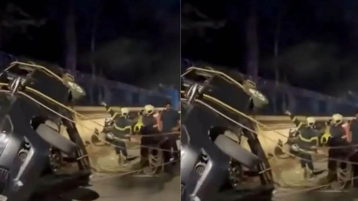 एक्सीडेंट का एक वीडियो सोशल मीडिया पर तेजी से वायरल हो रहा है। जिसमें एक पलटी हुई कार नजर आ रही है। सूचना मिलते ही पुलिस मौके पर पहुंची और कार को सड़क से हटाया गया।