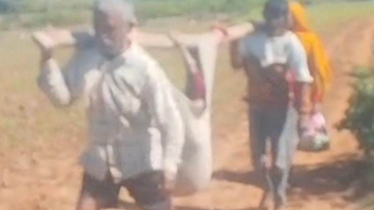 सड़क न होने से झोली बनी एम्बुलेंस... आलीराजपुर में 62 वर्षीय बीमार वृद्धा को कंधे पर लादकर अस्पताल ले गए