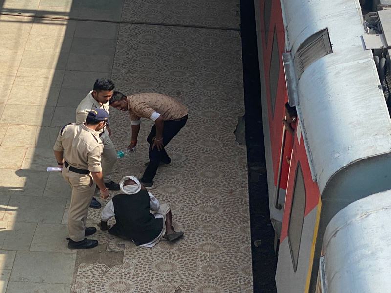 अशोकनगर रेलवे स्टेशन पर प्लेटफार्म और चलती ट्रेन के बीच फंसा वृद्ध, जवानों ने बचाई जान