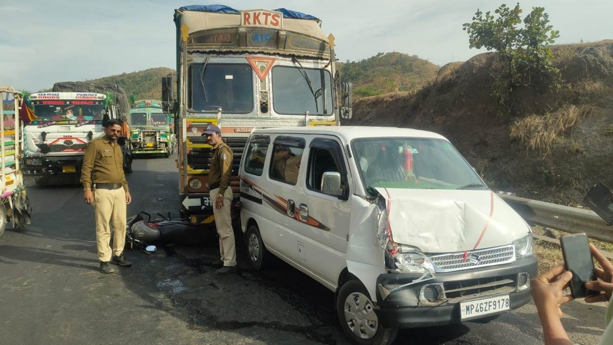 बिजासन चौकी पर पदस्थ नारायण पाटीदार सहित अन्य जवान द्वारा वाहनों को हटवाकर ट्राफिक खुलवाया। बाइक सवार बाबूलाल पुत्र गुमान सिंह निवासी देवझिरी सेंधवा अपनी ससुराल महाराष्ट्र जा रहा था। वहीं कार मालिक रतिलाल रेबा डावर निवासी कुंडिया मालवान वरला का है।