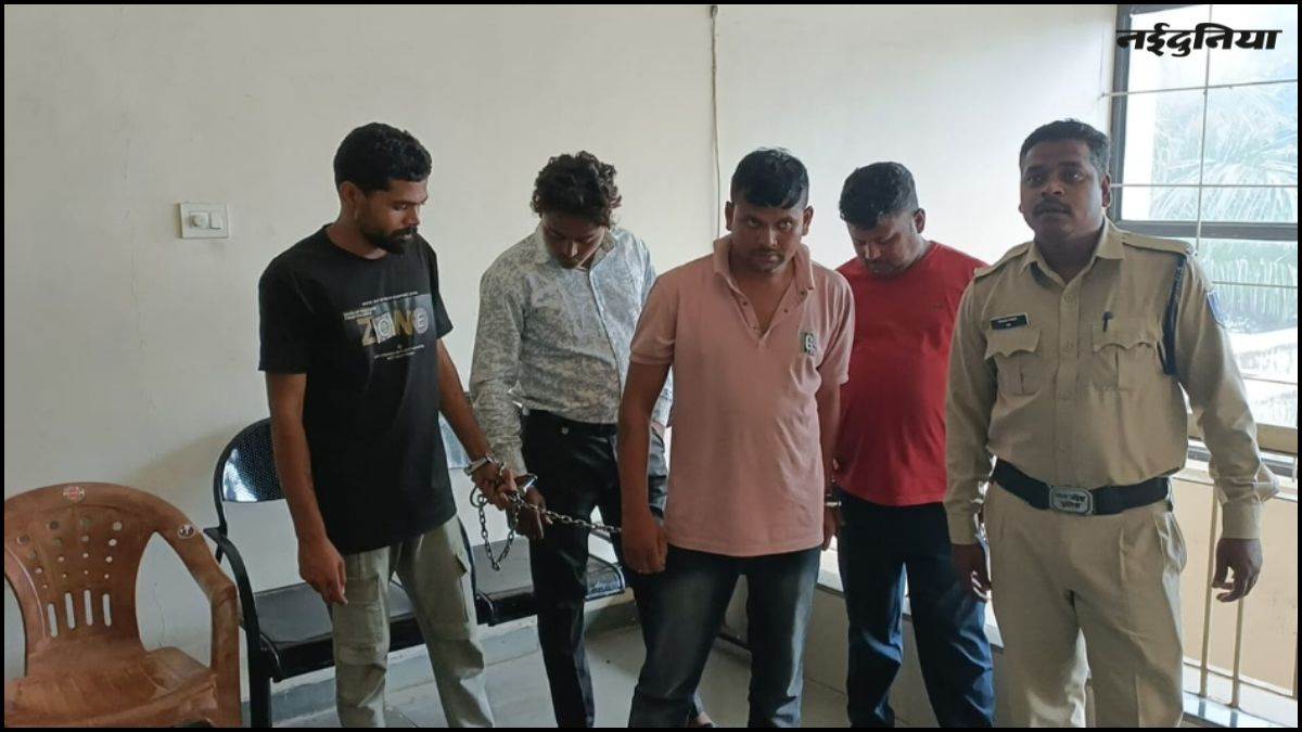 गिरफ्तार आरोपित नितिन विश्वकर्मा, पवन उर्फ प्रवीण विश्वकर्मा, रितिक विश्वकर्मा, सूरज उर्फ एलियन भावसार को गिरफ्तार कर पूछताछ की। उनके कब्जे से हेवल्स कंपनी के 8 बंडल कापर वायर, लगभग 50 किलो तांबे का स्क्रैप (तार), हेवल्स कंपनी का 30 मीटर कापर वायर और घटना में प्रयुक्त 03 स्कूटी जब्त की गई।