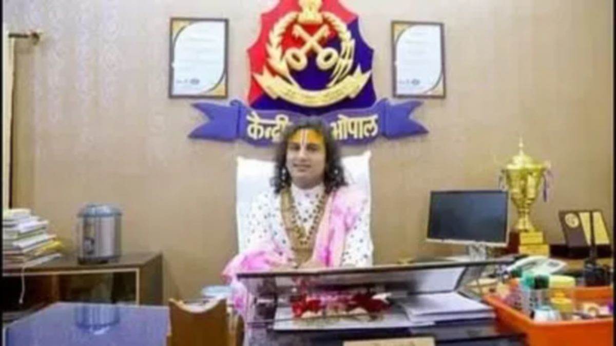Bhopal News: जेल अधीक्षक की कुर्सी पर विराजे कथावाचक अनिरुद्धाचार्य, तस्वीर वायरल