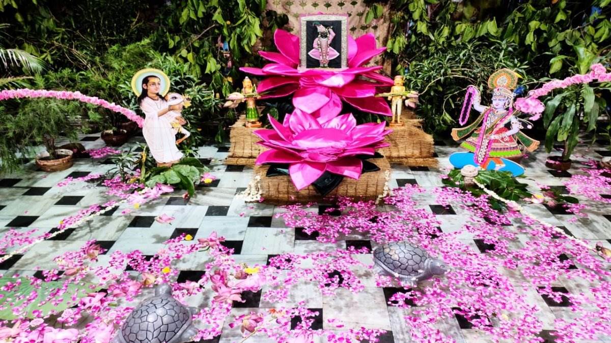 मंदिर के मुखिया श्रीकांत शर्मा ने बताया कि मोगरे व कमल से बनी हुई कुंज में विराजमान होकर प्रभु ने दर्शन दिए। प्रभु के साथ श्री यमुना जी एवं श्री महाप्रभुजी ने भी विराजमान होकर भी दर्शन दिए। कमल से बने इत्र का छिड़काव भी किया गया। इस अवसर पर बड़ी संख्या में श्रद्धालु मंदिर पहुंचे और भगवान की इस मनोरम छवि के दर्शन का आनंद लिया।