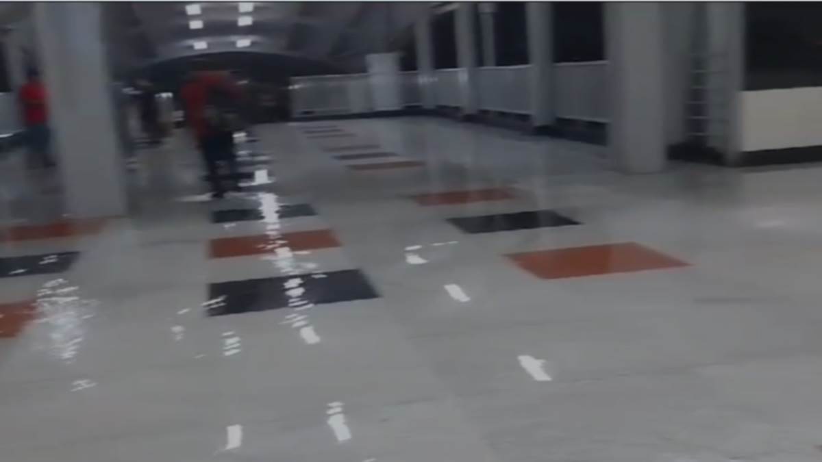 डोम से पानी गिरने से प्लेटफार्म पर खड़े यात्रियों की परेशानी। यात्रियों की शिकायत के बाद स्टेशन प्रबंधन ने किए पानी निकासी के इंतजाम।