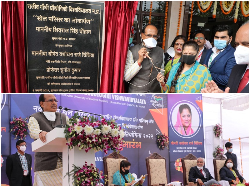 भोपाल। राजधानी में स्थित राजीव गांधी प्रौद्योगिकी विश्वविद्यालय में आज नवनिर्मित खेल परिसर का मुख्यमंत्री शिवराज सिंह चौहान ने लोकार्पण किया। इस अवसर पर प्रदेश की खेल एवं युवा कल्याण मंत्री यशोधरा राजे सिंधिया, आरजीपीवी के कुलपति प्रोफेसर सुनील कुमार भी मौजूद रहे। इसके साथ ही परिसर में अंतरविश्वविद्यालयीन बैडमिंटन प्रतियोगिता का शुभारंभ भी हुआ। इस अवसर पर मुख्यमंत्री शिवराज सिंह ने प्रतियोगिता में शिरकत कर रहे खिलाड़ियों के साथ बैडमिंटन खेलकर उन्हें प्राेत्साहित भी किया।