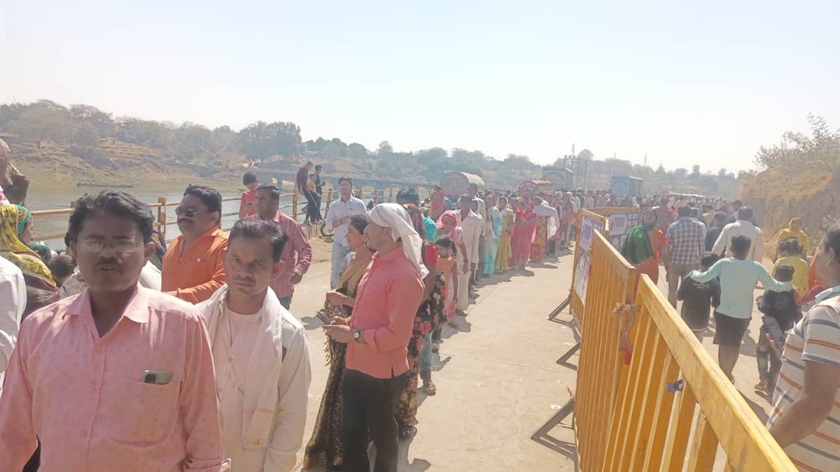 Burhanpur News: ताप्ती नदी के राजघाट पर तीन घंटे में एक लाख से ज्यादा भक्तों को बांटे रुद्राक्ष