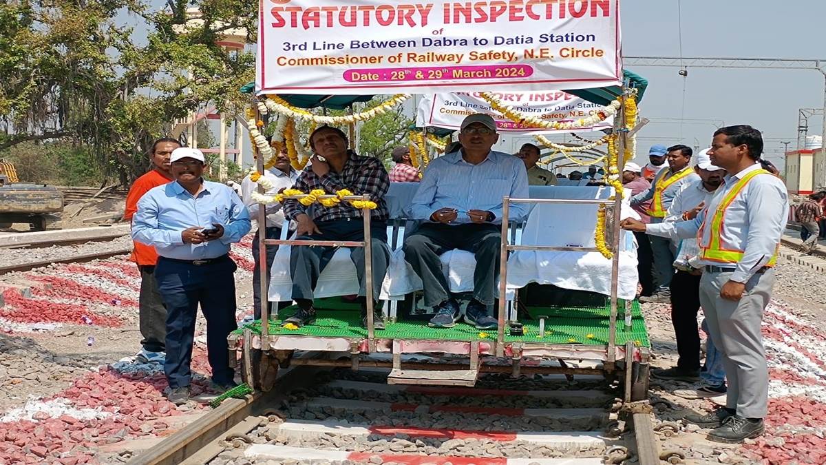 रेल संरक्षा आयुक्त द्वारा मंडल रेल प्रबंधक दीपक कुमार सिन्हा सहित सभी अधिकारियों के साथ इंस्पेक्शन कैरिज तथा मोटर ट्राली के माध्यम से सोनागिर से दतिया के मध्य नवनिर्मित तीसरी लाइन के निरीक्षण के दौरान ट्रैक्शन, सिग्नल, गेट, ओएचई, ब्रिज, ट्रैक, ट्रैक-प्वाइंट्स आदि सभी इंस्टालेशन तथा उनकी कार्य क्षमता की गहनता से परख की गई। निरीक्षण के दौरान सभी संरक्षा पहलुओं से संतुष्ट होने के पश्चात दतिया से डबरा के मध्य नव स्थापित 31 किलोमीटर तीसरी रेल लाइन पर 120 किमी प्रति घंटा की गति से स्पीड ट्रायल किया गया। रेल संरक्षा आयुक्त के निरीक्षण पश्चात उनके अनुमोदन के उपरांत इस खंड की तीसरी लाइन पर रेल संचालन शुरू हो सकेगा। उक्त संस्थापन के साथ ही झांसी धोलपुर रेलखंड पर तीसरी लाइन के कार्य के अंतर्गत मात्र आंतरी-ग्वालियर 22 किमी तथा हेतमपुर–धोलपुर 13 किमी रेलखंड पर कार्य अंतिम चरण में चल रहा है। वहीं झांसी–बीना तीसरी लाइन प्रोजेक्ट के अंतर्गत जाखलौन-धौर्रा रेलखंड 11 किमी रेलखंड पर भी अंतिम चरण में कार्य शेष है, जिसके पूर्ण होने के बाद झांसी मंडल के बीना-धौलपुर रेलखंड तीसरी रेल लाइन से जुड़ जाएगा।