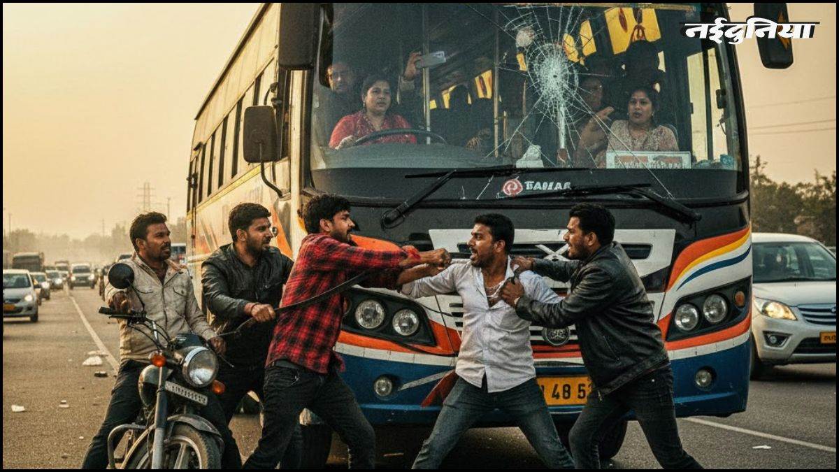 वीडियो में साफ देखा जा सकता है कि आरोपितों ने चलती बस को रोका और स्टाफ के साथ हाथापाई की। बस स्टाफ के अनुसार, तीन बाइक पर सवार छह बदमाशों ने उटावद बायपास पर बस को रोका। आरोपितों ने चालक और कंडक्टर के साथ गाली-गलौज की, मारपीट की और बेल्ट से बस के कांच भी तोड़ दिए। घटना के बाद यात्रियों में दहशत फैल गई।