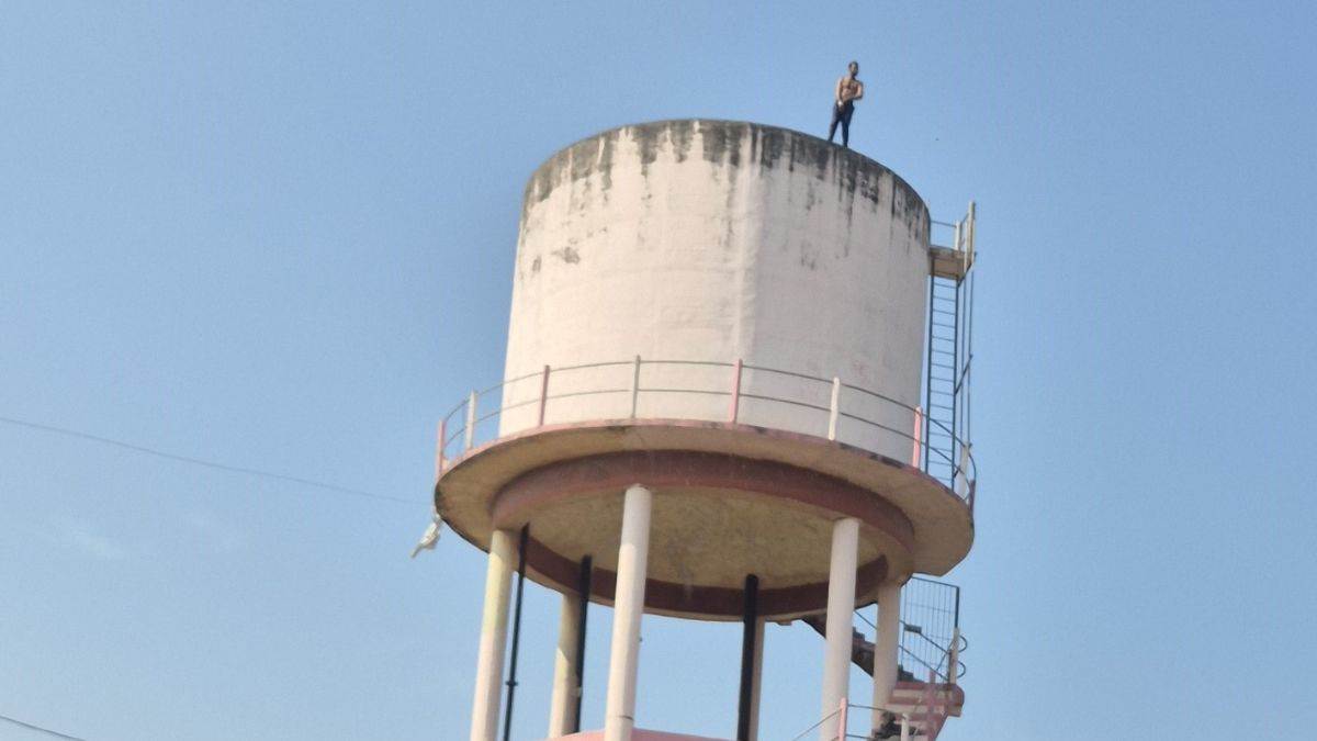 नईदुनिया प्रतिनिधि, अमझेरा। थाना परिसर के पास बनी पानी की टंकी पर सोमवार दोपहर को विनोद नामक युवक शराब के नशे में चढ़ गया। करीब एक घंटे तक वह टंकी से कूदने की धमकी देता रहा। युवक ने टंकी के ऊपर से अपना मोबाइल नीचे फेंक दिया और शर्ट भी उतारकर फेंक दी। सूचना मिलते ही पुलिस मौके पर पहुंची और युवक को नीचे उतरने के लिए लगातार समझाइश देती रही, लेकिन वह किसी की बात सुनने को तैयार नहीं था।