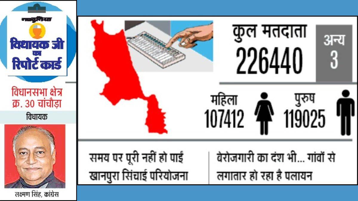 MP Chachoda Vidhan Sabha: ध्रुव झा, चांचौड़ा (गुना)। चांचौड़ा विधानसभा क्षेत्र का ज्यादातर हिस्सा गांवों में ही बसता है। ग्रामीण इलाकों में विकास का पहिया कुछ घूमा तो है, पर काम की पूरी गुंजाइश अब भी बनी ही हुई है। लोगों की उम्मीद थी कि चांचौड़ा जिला बन जाएगा तो विकास में तेजी आएगी, लेकिन उनकी यह उम्मीद अब तक पूरी नहीं हुई है। जलसंकट यहां बड़ा मुद्दा है। नगरीय क्षेत्र में एक दिन छोड़कर पेयजल आपूर्ति लोगों को बहुत सताती है। जलसंकट का कारण स्थानीय खानपुरा सिंचाई परियोजना और शहरी पेयजल योजना का अधर में होना है। गल्ला मंडी नगर से बाहर शिफ्ट होने और स्थाई बस स्टैंड नहीं होने से हर दिन जाम के हालात से जूझने को तो क्षेत्रवासी जैसे अपनी आदत में शामिल कर चुके हैं। पूर्व मुख्यमंत्री दिग्विजय सिंह के अनुज, कांग्रेस के कद्दावर नेता लक्ष्मण सिंह चांचौड़ा से 2018 के चुनाव में विधायक चुने गए। इसके साथ ही कांग्रेस की सरकार भी बन चुकी थी।