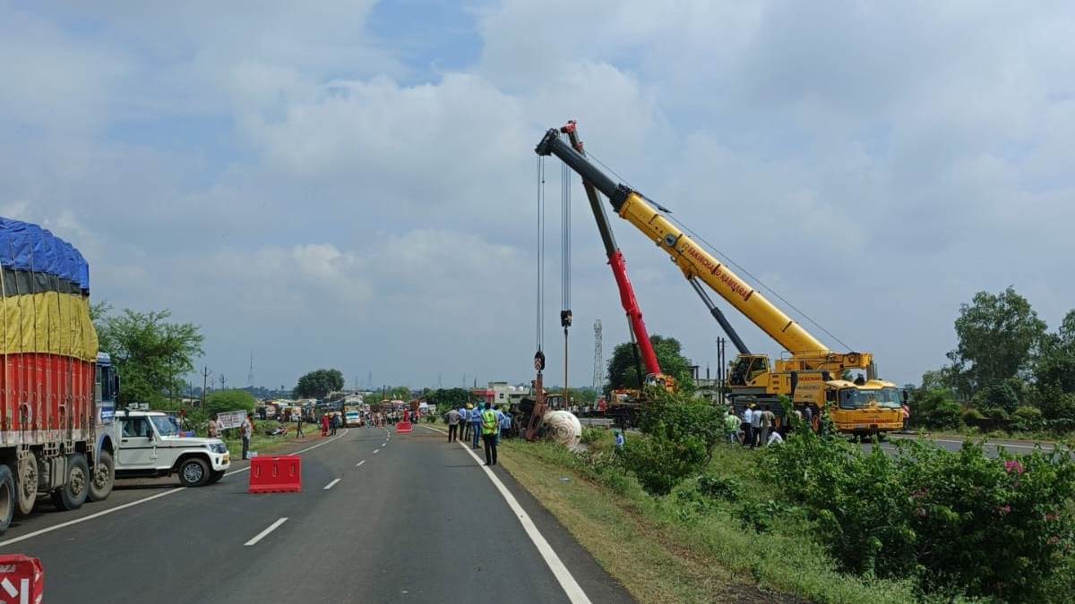 MP के गुना में नेशनल हाईवे पर पलटा प्रोपेन गैस से भरा टैंकर, लग गया 30 किमी लंबा जाम