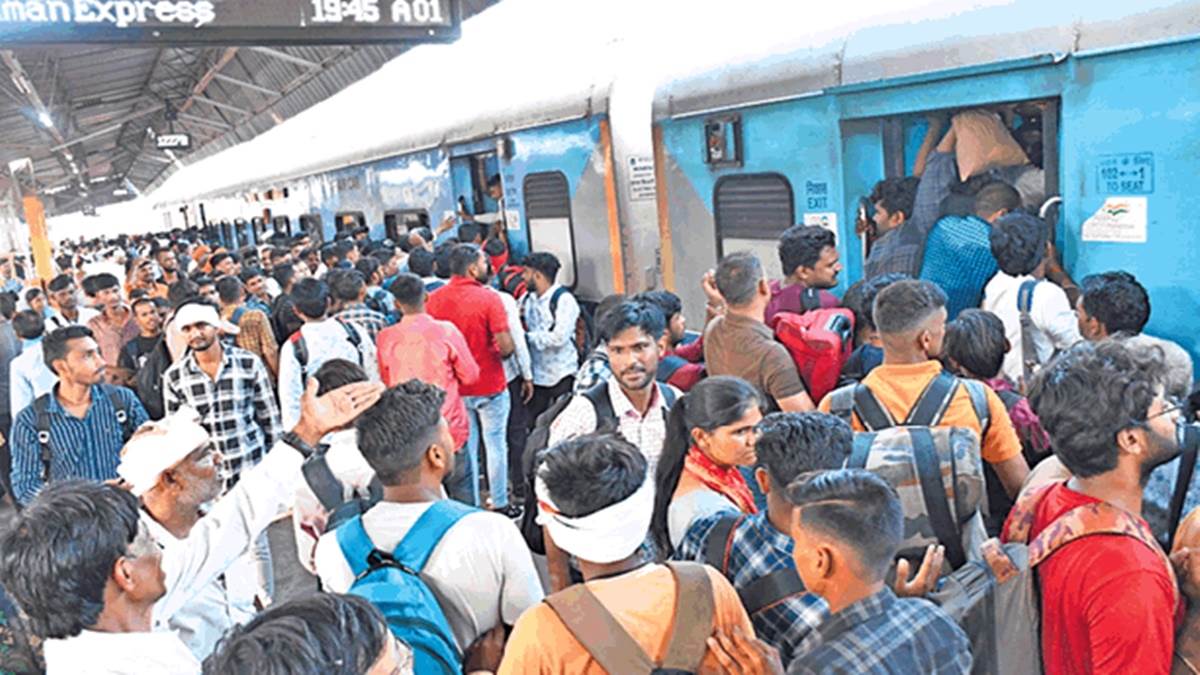 Crowd in Train in Gwalior: ग्वालियर. नईदुनिदया प्रतिनिधि। जन्माष्टमी पर श्रीकृष्ण के घर मथुरा जाने के लिए ट्रेनों मेें जगह मिलनी मुश्किल हो गई है। ग्वालियर से मथुरा जाने वाली विभिन्न ट्रेनों में गुरुवार तक आरक्षित सीटों की जमकर मारामारी मची हुई है। जन्माष्टमी पर ग्वालियर से जाने वाली 20 से अधिक ट्रेनों मेें एक भी आरक्षित सीट नहीं बची। इन ट्रेनों में वेटिंग भी 100 से अधिक चली गई है। उधर रेल प्रशासन का दावा है कि जन्माष्टमी पर श्रद्घालुओं की भारी भीड़ को देखते हुए कई ट्रेनों को अतिरिक्त ठहराव दिए गए हैं।