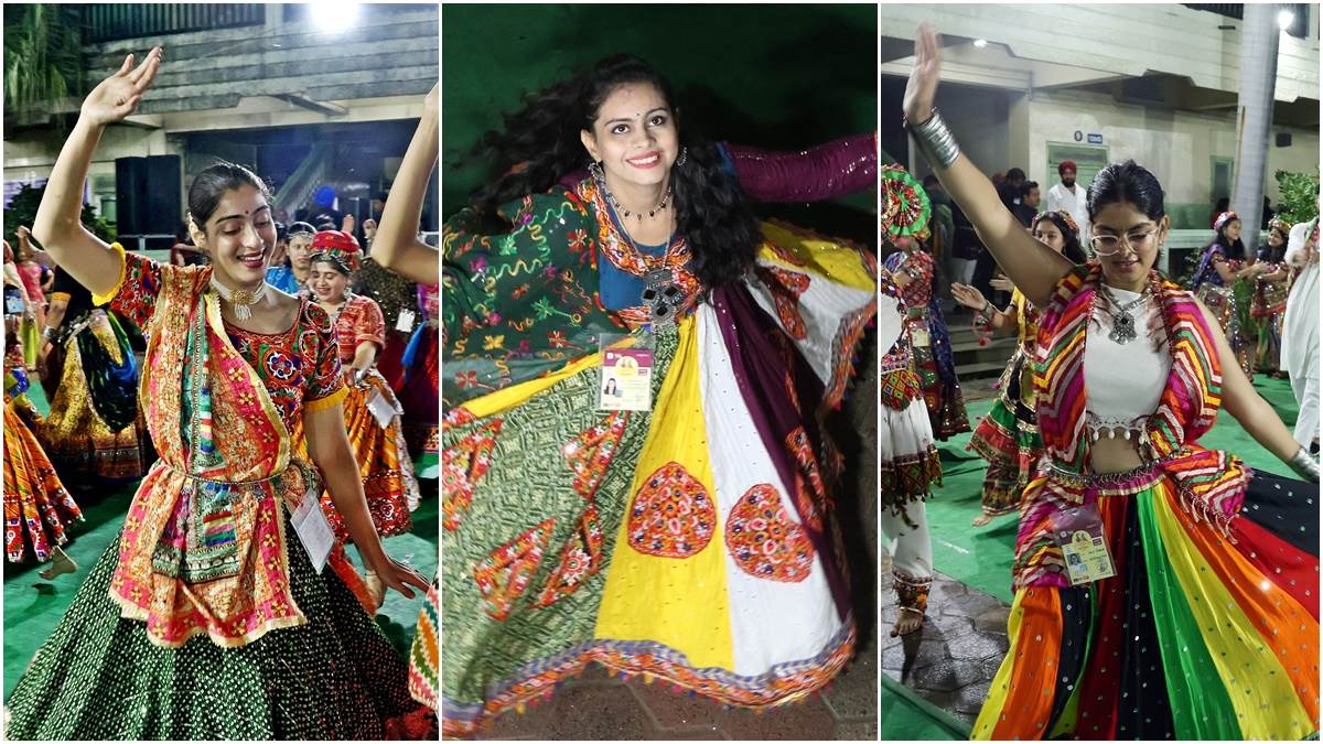 विभिन्न रंगों के परिधान पहनकर जैसे ही प्रतिभागी गरबा करना शुरू किया पूरा परिसर रंग-बिरंगी छटा से खिल उठा। ऐसा लगा मानों धरती पर इंद्रधनुष उतर आया हो। हर ताल पर कदम मिलाते हुए प्रतिभागियों ने समर्पण और आस्था का परिचय दिया।