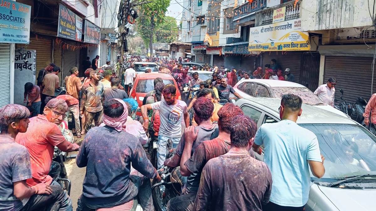 राजवाड़ा के अलावा पूरे शहर में युवाओं ने बाइक पर चलते हुए गुलाल उड़ाया। इसे लेकर यातायात पुलिस की क्यूआरटी टीम और चौकियों से माइक अनांउस किया जाता रहा कि खुद के साथ दूसरों की जिंदगी का भी ध्यान रखें। हालांकि पूरे शहर में कोई चालानी कार्रवाई नहीं हुई। परंतु यातायात पुलिस ने कई लोगों को हिदायत देकर छोड़ा।