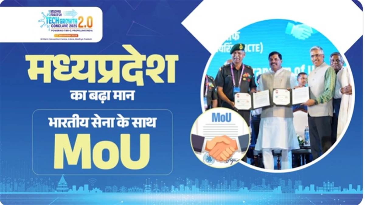 आज के कार्यक्रम में बेहतर टेक्नोलॉजी के आधार पर मध्यप्रदेश ने भारतीय सेना के साथ MoU किया है : CM@DrMohanYadav51 @MPSeDC_DST @Industryminist1 @minmpmsme #MPTechGrowthConclave2025… pic.twitter.com/sNviuZhATd