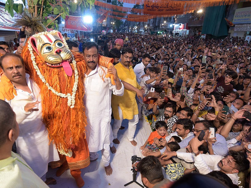 रथ पर विराजे अष्टधातु के भगवान नृसिंह - जांगड़ा पोरवाल पंचायती सभा द्वारा नृसिंह मंदिर छत्रीबाग में मंदिर प्रांगण से भगवान की शोभायात्रा निकाली गई। यात्रा मे भगवान को सुसज्जित रथ में विराजित किया गया। यात्रा नृसिंह बाजार, सांठा बाजार, बजाजखाना, मारोठिया, छत्रीबाग होते हुए वापस मंदिर पहुंची और महाआरती हुई। शोभायात्रा पश्चात महाआरती कर भोजन प्रसादी हुई।