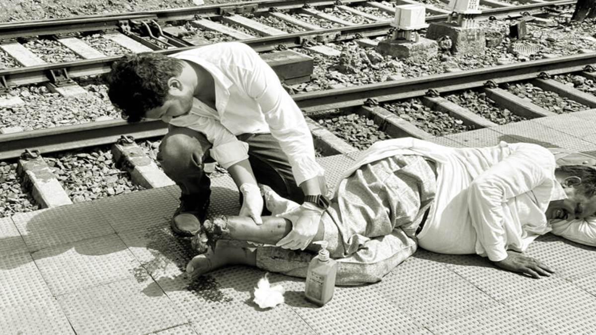 - ट्रेन रुकने से पहले पैर फंस गया, जिससे खून की धार फूट पड़ी।