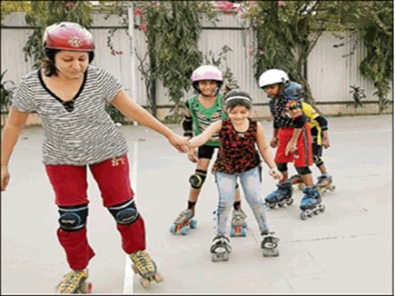 जबलपुर। स्केटिंग यानी पैरों में चके वाले जूते पहनकर, एक समतल धरातल पर बैलेंस बनाते हुए चलना। जब छोटेछोटे बच्चे स्केटिंग शूज पहनकर हवा से बातें करते हुए लहराते चलते हैं तो हर देखने वाला उन्हें देखता ही रह जाता है। कुछ ऐसा ही नजारा स्मॉल वंडर स्कूल के प्ले ग्राउंड में देखने मिल रहा है लेकिन यहां बच्चों के साथ कुछ बच्चों की मम्मियां भी स्केटिंग शूज पहनकर स्केटिंग करती नजर आ रही हैं। मम्मियों का कहना है कि पहले स्पोर्ट्स में बहुत रुचि थी लेकिन शादी के बाद सब छूट गया, अब इसी बहाने एक बार नई शुरुआत हो रही है।