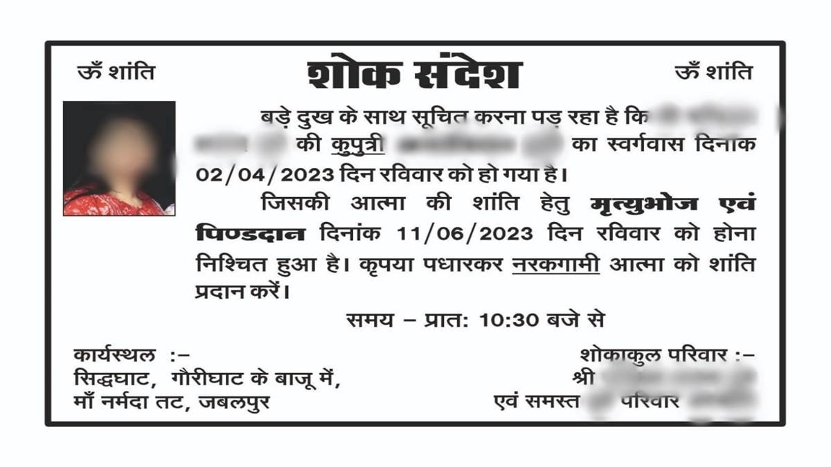 Love Jihad In Jabalpur : युवती के परिवार वालों ने शोक संदेश छपवाया, बेटी काे मृत मान लिया, मृत्युभोज का भी आयोजन।