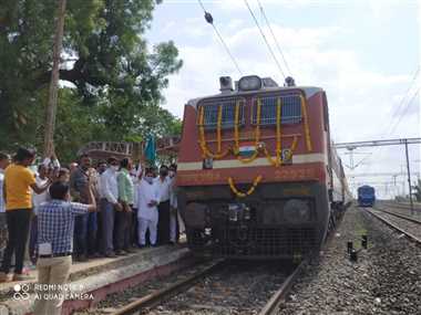 ट्रेन को सुबह 9.40 बजे बीड़ स्टेशन से ट्रेन को रवाना किया गया। इससे पहले विधायक विधायक नारायण पटेल बैंड-बाजे के साथ स्टेशन पर पहुंचे। यहां पर स्टेशन मास्टर सोमनाथ वर्मा व लोको पायलट का सम्मान किया। बड़ी संख्या में मौजूद ग्रामीणों ने ट्रेन को फूलों की माला से सजाया। स्टेशन पर कन्या पूजन कर सिंगाजी का जयकारा लगाया व ट्रेन को हरी झंडी दिखाकर रवाना किया। इस दौरान सरपंच बालकृष्ण अग्रवाल, भाजपा नेता सुरेंद्र टूटेजा, संदीप जायसवाल, चंद्रमोहन राठौर, शशि कपूर, मधुकर खाडे, गणेश जायसवाल, प्रीतम मंडलोई, निकलेश गारवे, अनिल जैन, मनोज जैन, देवेंद्र ललवानी, चंपालाल गोयल सहित नायब तहसीलदार कुणाल अवासिया, चौकी प्रभारी मजहर खान मौजूद रहे।