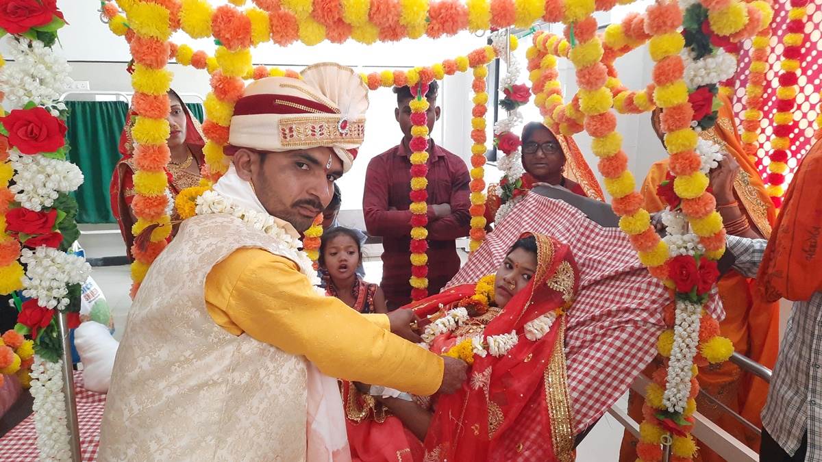 पंडित ने विधि-विधान के साथ विवाह संबंधी औपचारिकता पूर्ण कराई। हास्पिटल के जनरल वार्ड में भर्ती शिवानी के पलंग को मंडप की तरह सजाया गया। वैवाहिक काम पूरा करवाने में शिवानी की जेठानी मंजू यादव ने मदद की। दोनों के एक-दूसरे को वरमाला पहनाते ही स्वजन की खुशी का ठिकाना नहीं रहा।