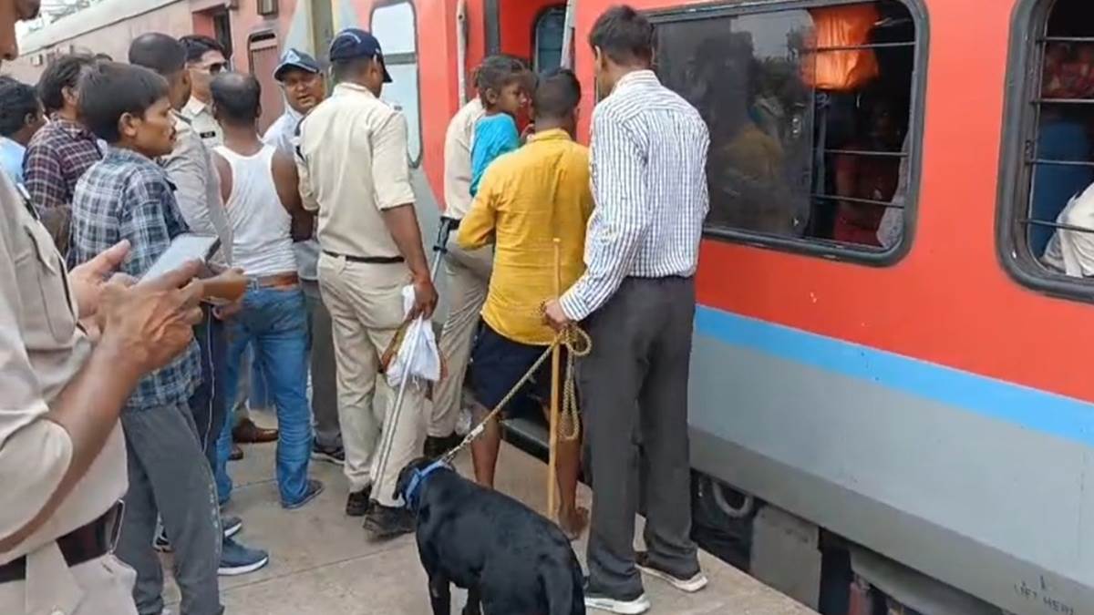 कामायनी एक्सप्रेस में बम की सूचना पर डाग स्क्वाट की मदद से जांच करती पुलिस टीम। नईदुनियाHighLights