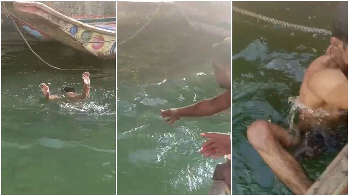 पास में मौजूद एक नाविक ने हिम्मत जुटाई और तीनों को एक-एक बचाया गया। बचाकर तीनों को जब घाट पर लाया गया तो इनमें से एक ने नाविक से कहा कि बचाया है तो कोई अहसान थोड़ी किया। इस बात से कुछ श्रद्धालु नाराज हो गए और ऐसा कहने वाले की पिटाई कर दी, वह वहां से भाग निकला।
