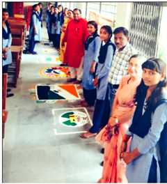 मंडला (नईदुनिया प्रतिनिधि)। शासकीय गर्ल्स कालेज की छात्राओं ने प्राचार्य डॉ.शरद नारायण खरे के मार्गदर्शन तथा डॉ.अंजली पंड्या के संयोजन में 'तिरंगा रंगोली प्रतियोगिता का आयोजन किया गया,जिसमें छात्राओं ने तिरंगे के सम्मान में एक से बढ;कर एक रंगोलियां डालकर न केवल अपनी कला का प्रदर्शन किया,बल्कि अपनी देशभक्ति की भावना को भी अभिव्यक्त किया।