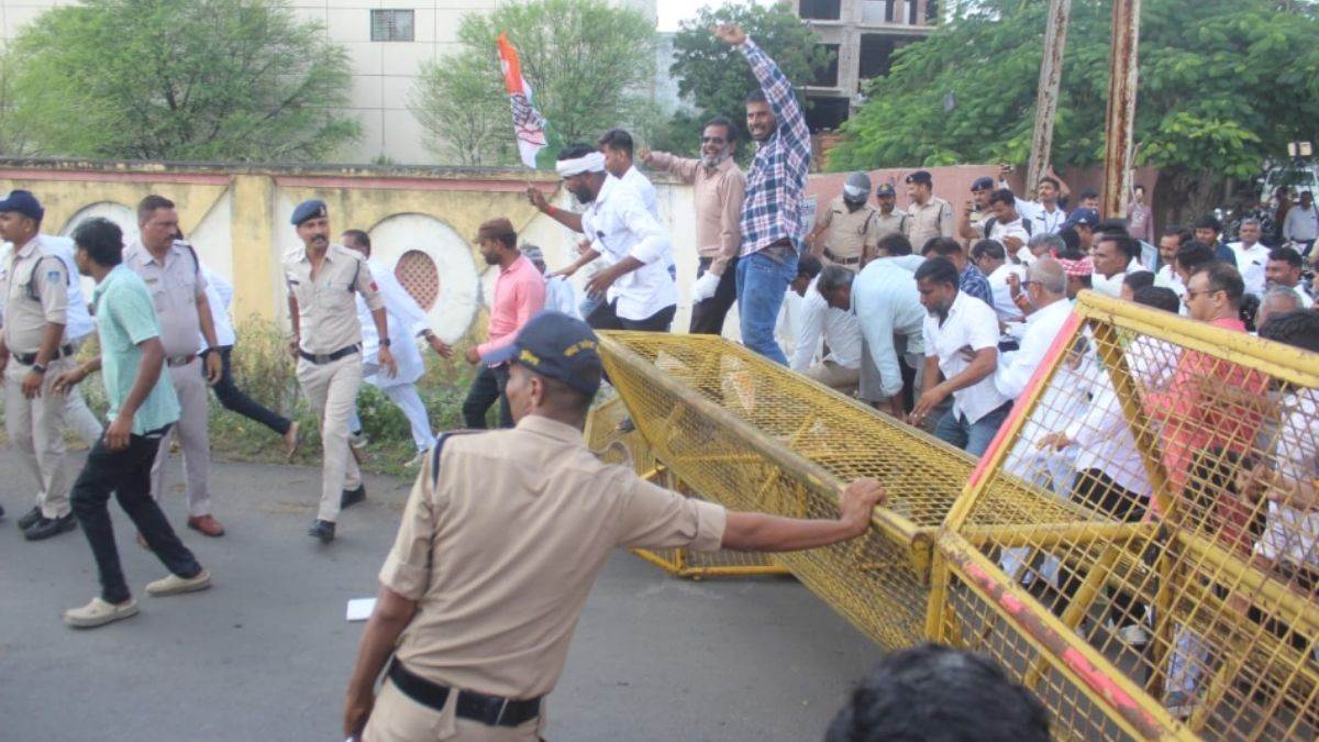 प्रशासन का प्रयास था कि कांग्रेस की रैली नक्षत्र गार्डन के बाहर ही खत्म हो जाए। इसके लिए नक्षत्र से कलेक्टर कार्यालय के बीच भी बेरिकेट लगाए गए थे। रैली को रोकने की कोशिश की गई पर कांग्रेस नेताओं विधायक विपिन जैन, राकेश पाटीदार सहित अन्य ने बेरिकेट को गिरा दिए। इसके बाद रैली कलेक्टर कार्यालय के बाहर पहुंची। यहां नेताओं ने अपनी बात कही और राज्य पाल के नाम ज्ञापन एसडीएम एसएल शाक्य को सौंपा।