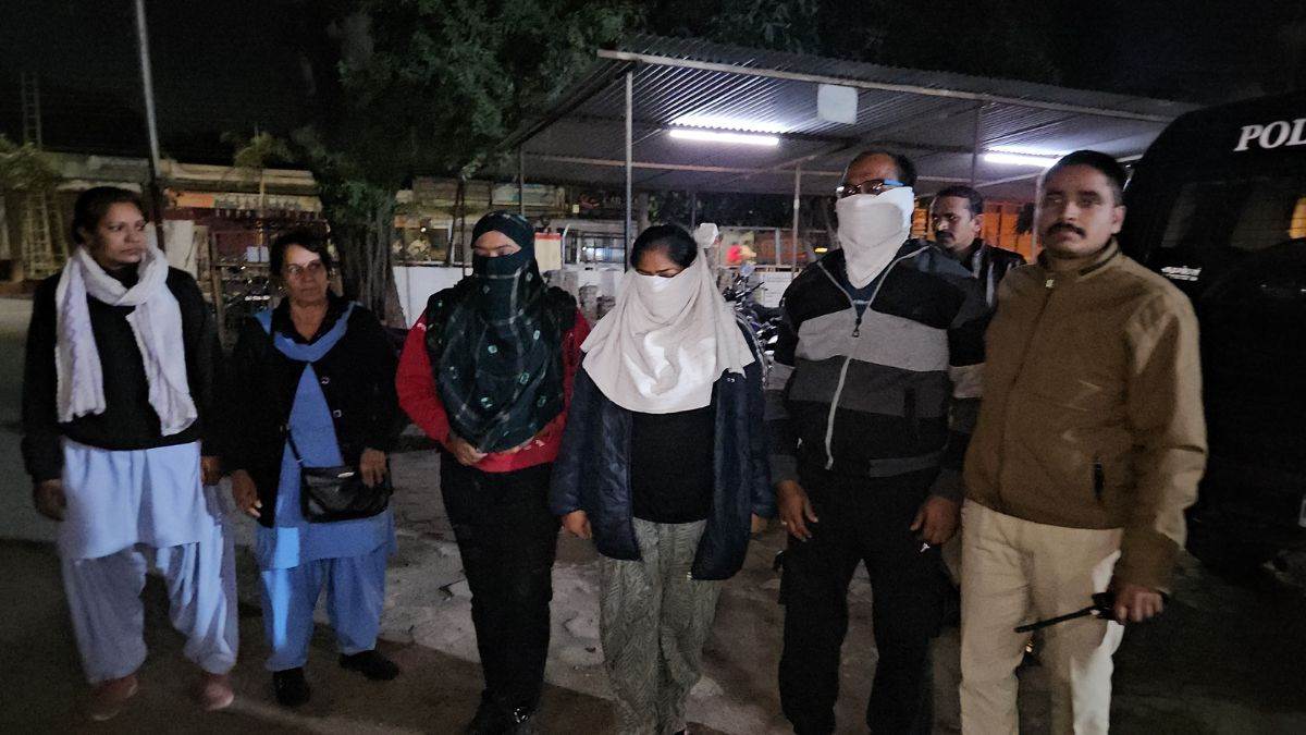 औद्योगिक क्षेत्र थाने में आरोपित दपंत्ति, युवती के साथ पुलिस।HighLights