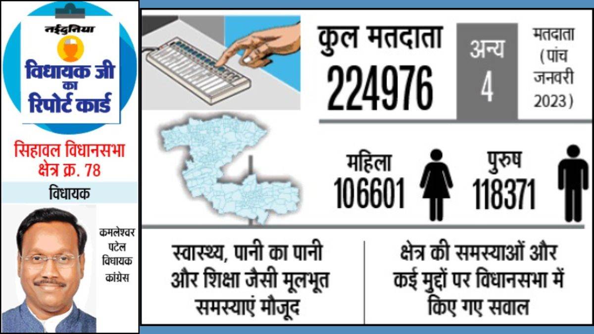 पूर्व मंत्री और विधायक कमलेश्वर पटेल का दावा है कि बिजली, पानी और सड़क को लेकर लगातार काम किया गया है जिसमें सफलता भी मिली भी है। सरकारी निद्रा को तोड़ने के लिए बिजली समस्या को लेकर पदयात्रा और धरना-प्रदर्शन भी करना पड़ा है। स्वास्थ्य और शिक्षा के क्षेत्र में विकास के लिए लगातार प्रयास किए जा रहे हैं। ग्राम पंचायतों में नल जल पर भी काम हो रहा है।- कमलेश्वर पटेल, विधायक कांग्रेस
