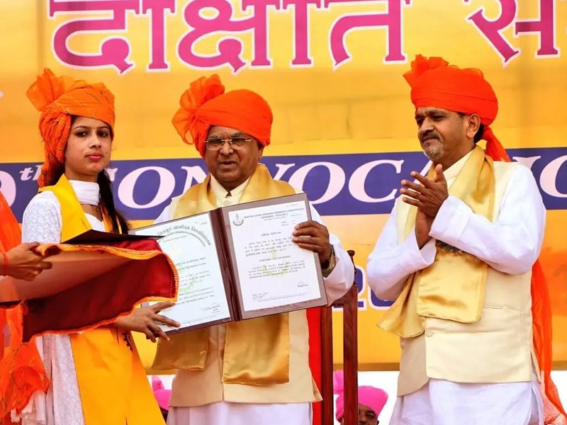 युवाओं से की अपील : राज्यपाल ने युवाओं से अपील की, कि गांवों के समग्र परिवर्तन में भागीदार बनें। उन्होंने विश्वविद्यालय के नवम दीक्षांत अवसर पर नवदीक्षित छात्र-छात्राओं से आह्वान किया कि नानाजी के आदर्श को आत्मसात करें। नानाजी ने सारी जिंदगी गरीबों के लिए जो खपाई है और ये विश्वविद्यालय से आप कभी दीक्षा लेकर जाते हो तो इतना समझना जरूरी है कि राष्ट्र सेवा में ही अपना जीवन समर्पित करने वाले नानाजी आज प्रत्यक्ष रूप में हमारे बीच नहीं हैं फिर भी जनसेवा के हो कार्य उन्होंने किए हैं उनके माध्यम से नानाजी का अस्तित्व स्थाई रूप से रहने वाला है। उन्होंने कहा कि यहां आकर मुझे अनुकृति हुई है कि ऐसी धरती को सादर बार-बार नमन करने का मन होता रहता है। आशा करता हूं कि आप युवाओं को सामाजिक संरचना एवं नवनिर्माण में प्रतिभा और ध्यान द्वारा वंचित वर्गों के कल्याण के लिए सर्वश्रेष्ठ योगदान करें। राज्यपाल ने सभी को बधाई देते हुए कहा कि हम सभी पर राष्ट्रऋषि नानाजी का आशीर्वाद बना रहे। भगवान से ऐसी प्रार्थना करता हूं।
