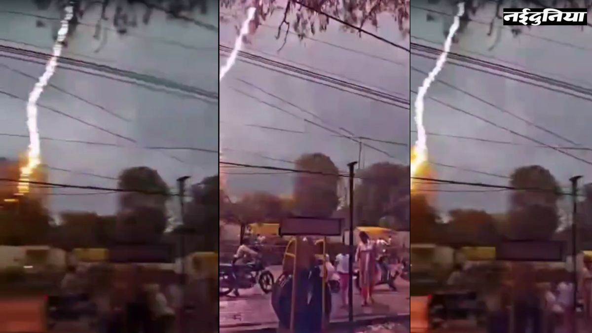 नईदुनिया प्रतिनिधि, सतना। शहर में आकाशीय बिजली गिरने का एक वीडियो कैमरे में कैद हो गया। वीडियो कलेक्ट्रेट रोड स्थित शासकीय वेंकट क्रमांक एक स्कूल के सामने का है। जहां एक पेड़ पर आसमानी बिजली (गाज) गिर गई। यह घटना पास में खड़े एक युवक के मोबाइल कैमरे में रिकॉर्ड हो गई। जिसका लाइव वीडियो अब सोशल मीडिया पर वायरल हो रहा है।