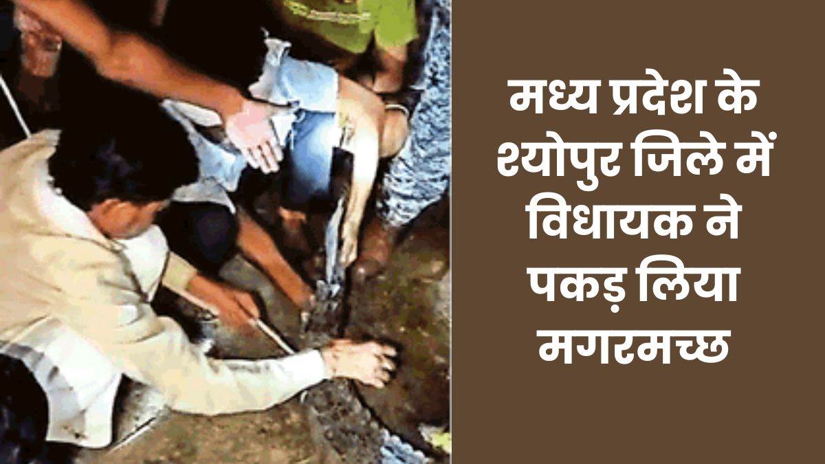 श्योपुर के करीब गोहेड़ा में एक घर में घुसा मगरमच्छ, विधायक बाबू जंडेल ने रेस्क्यू कर पकड़ा