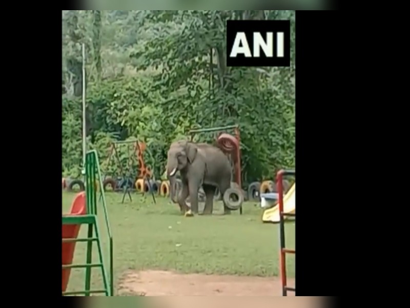 #WATCH | A wild elephant from Amchang Wildlife Sanctuary played & enjoyed as the animal stepped into a children's park in Narangi Army Cantt in Assam's Guwahati. pic.twitter.com/FCcKWWLhJ8