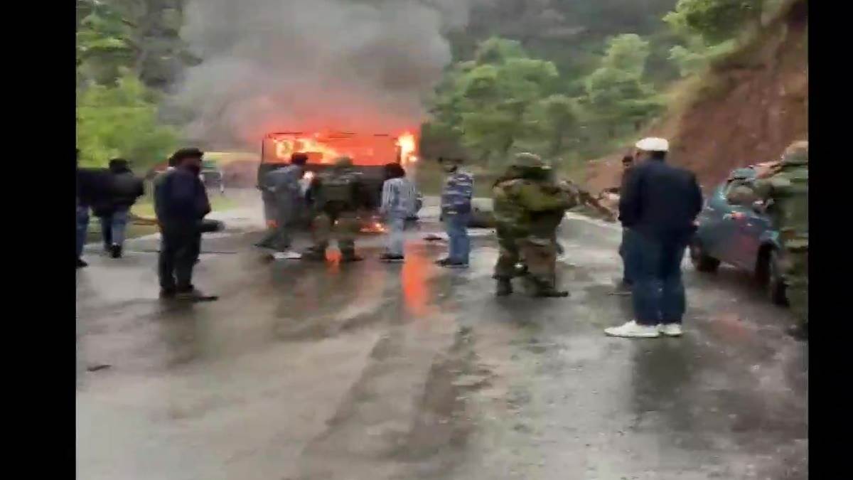An Army vehicle moving between Bhimber Gali and Poonch in the Rajouri sector in J&K was fired on by unidentified terrorists today. The vehicle caught fire, due to likely use of grenades by terrorists. Five personnel of the Rashtriya Rifles Unit deployed for Counter Terrorist… pic.twitter.com/a3ytvsAZbu